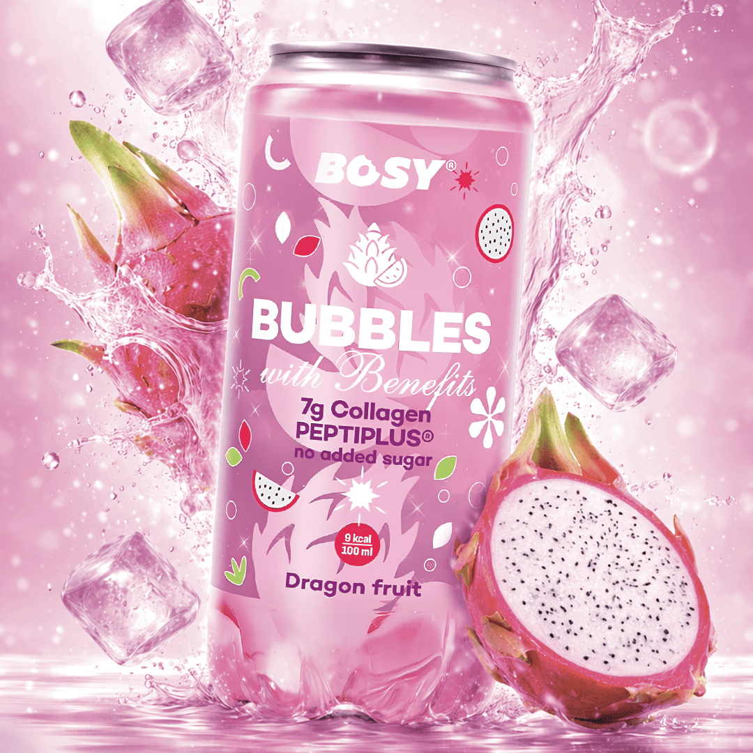 Фино газирана напитка с екзотичен вкус на драконов плод и 7 грама хидролизиран колаген – чиста наслада и грижа за кожата, косата, ноктите и ставите.Всяка глътка носи здраве отвътре и блясък отвън. Без добавена захар и само 9 kcal/100 ml.