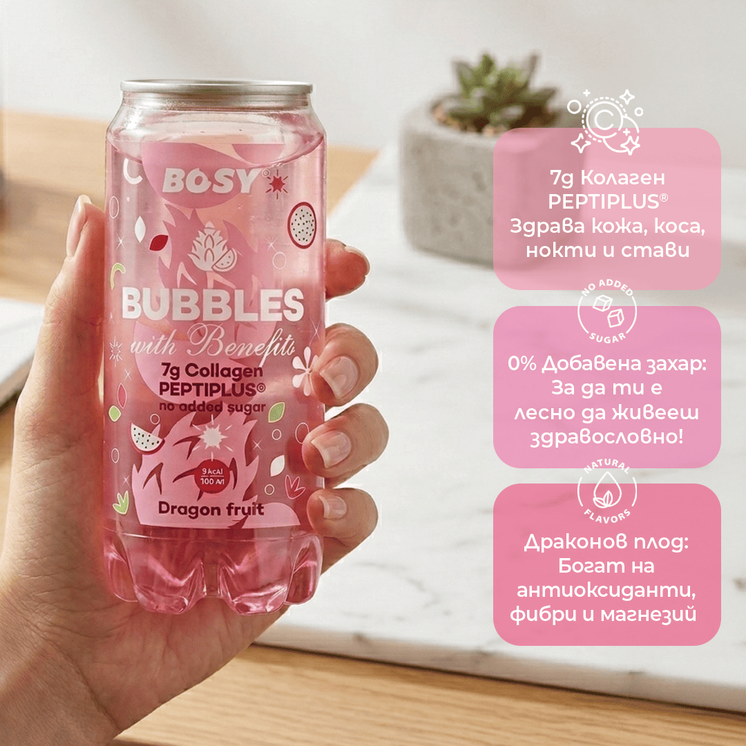 Чиста формула без излишни калорииБез добавени захари и с едва 9 калории на 100 мл, Bubbles With Benefits – Dragon Fruit & 7g Collagen PEPTIPLUS® е отличен избор за балансиран начин на живот.