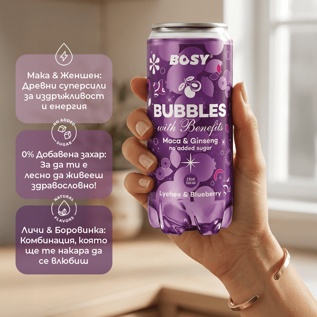 Фино газирана напитка с невероятно приятен вкус на боровинка и личи, която комбинира наслада за сетивата и грижа за тялото.С мака и женшен, тя зарежда тялото с естествена енергия.Лека пенлива наслада, която те кара да забравиш, че пиеш нещо здравословно.